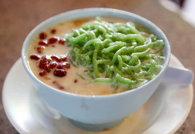 A traditional dessert popular in Malaysia. First, quickly shaved out a large bowl of frosting, put long-grain red beans and brown sugar that have been cooked thoroughly, then put a kind of green rice noodles mixed with Pandan juice (most of the current Pandan ingredients have been changed to natural mung bean flour), and finally pour a spoonful of milky white coconut milk over it. After a while, the frost melted, and the purple bean red and transparent greenery appeared on top of the coconut milk that was still milky due to the darkening color of brown sugar, and the color was attractive and aroused to the appetite.