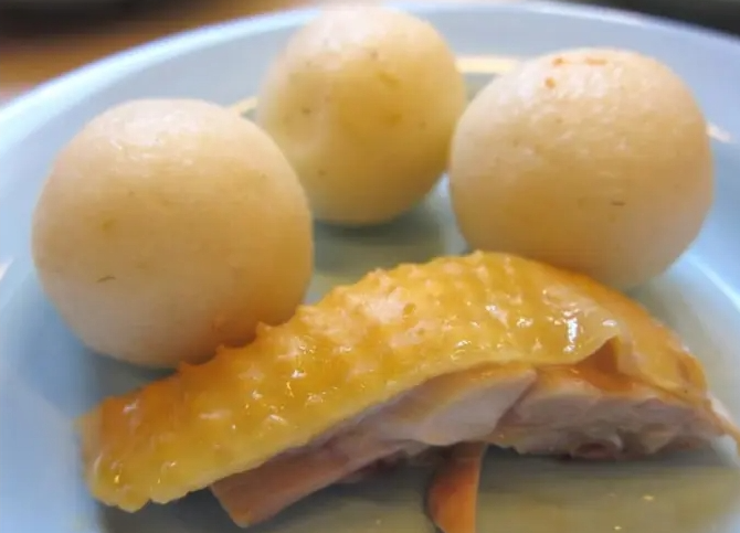 The most classic dish in the ancient city is 1 grain chicken rice, this is not fish balls, this is grain rice It is said that in the past, Hainanese people in the Nanyang area used to make it easier to eat, so they put rice + chicken oil and then kneaded it into rice balls the size of a ping pong ball, and then ate it as a side dish.